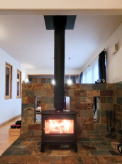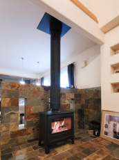 M邸(香川県三豊市)既存暖炉スペースにイギリスの鋼板製薪ストーブを設置