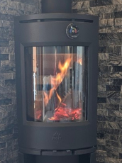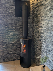 (兵庫県南あわじ市)フロントに丸みのあるモダンデザイン薪ストーブを設置