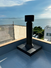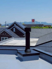 必要煙突高さを稼ぐため煙突囲いを立ち上げた角トップ仕様