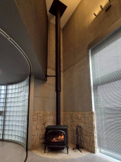 (香川県高松市)吹き抜けの大空間に大型薪ストーブを設置